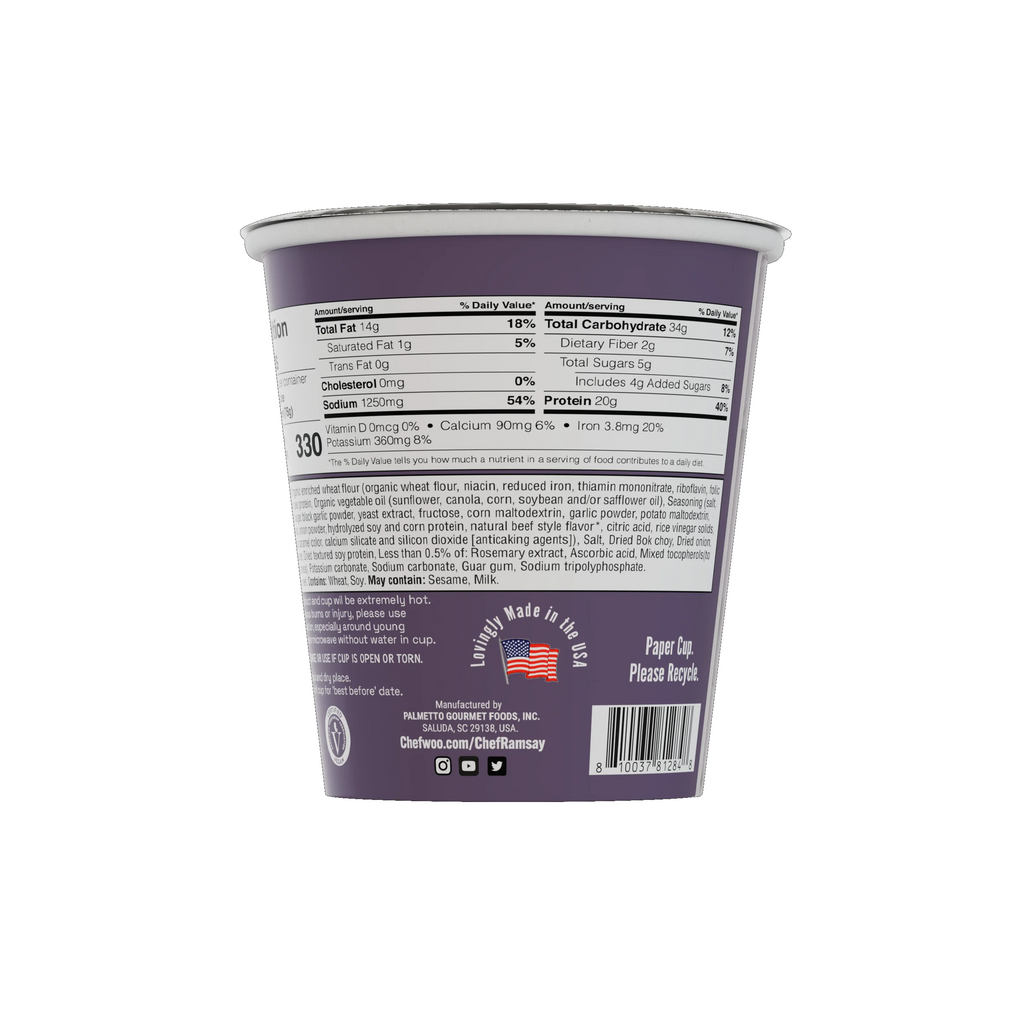 About this item A Rich and Sophisticated Ramen Flavor: Chef Ramsay combines the subtle sweetness of black garlic with a rich, beef-inspired flavor, creating a complex sweet and savory ramen experience. Protein-Packed, Slurpable Noodles: Each cup provides 20 grams of complete plant-based protein, with tender noodles that provide a satisfying...