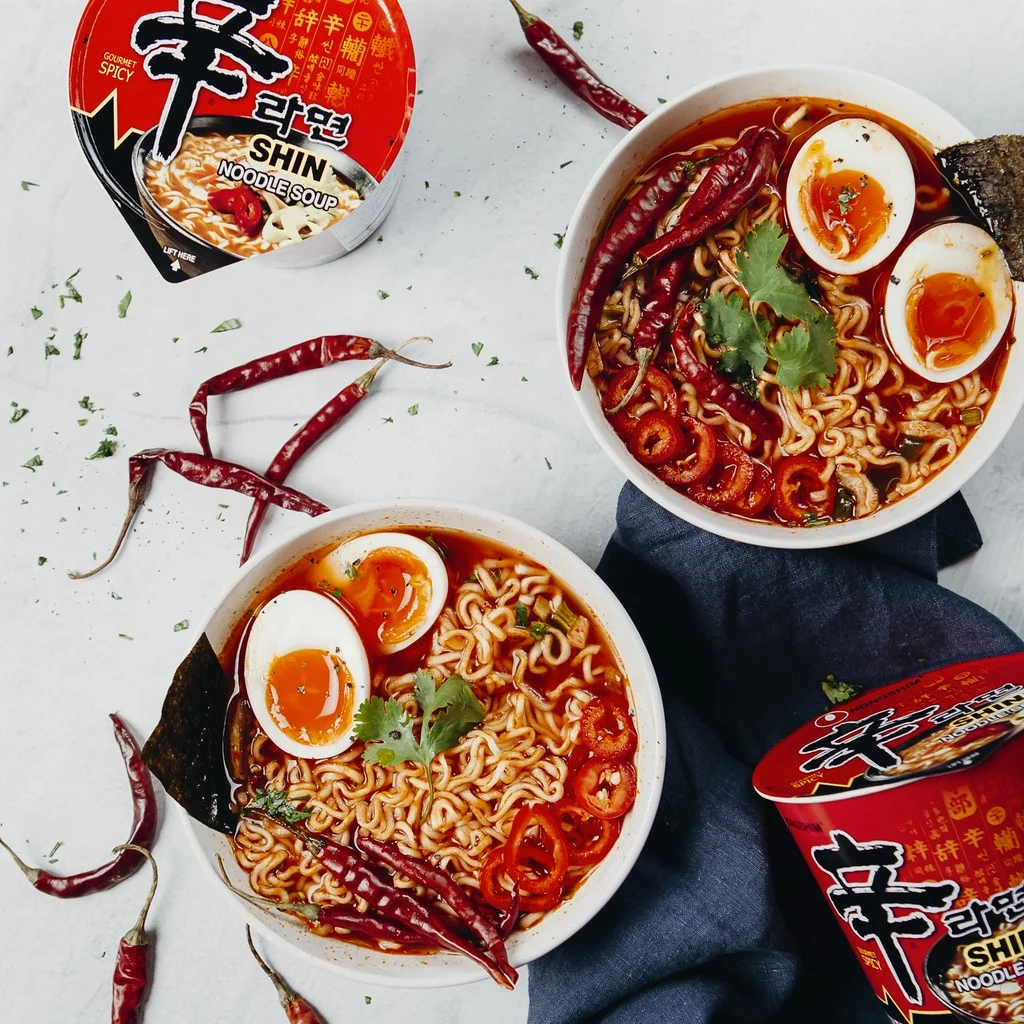 The most noticeable thing about Shin Ramyun Black is the thick, meaty broth enhanced with garlic and vegetables to ensure that our consumers get the nutrients they need. In addition, red pepper and green onion are added to give Shin Ramyun Black the famous 'kick' of Shin Ramyun. You can enjoy the peppery taste of Shin Ramyun Black and thick noodles with 0 grams of Trans-Fat per serving. The broth, like all Nongshim products has no added MSG to ensure that our consumers get only the best. Nongshim is a Korean food company that produces instant noodles and snacks, which has led the Korean food industry since their establishment in September 1965. Since 1994, Nongshim America, Inc. Has successfully brought their exciting tastes of Korea to north America. In the new millennium, they continue to expand into a market-leading global company, dedicated to the improved health and lifestyles of their customers. Nongshim is dedicated to bringing you high quality products, packed with delicious and unique flavors. Each bowl is 3.56 oz